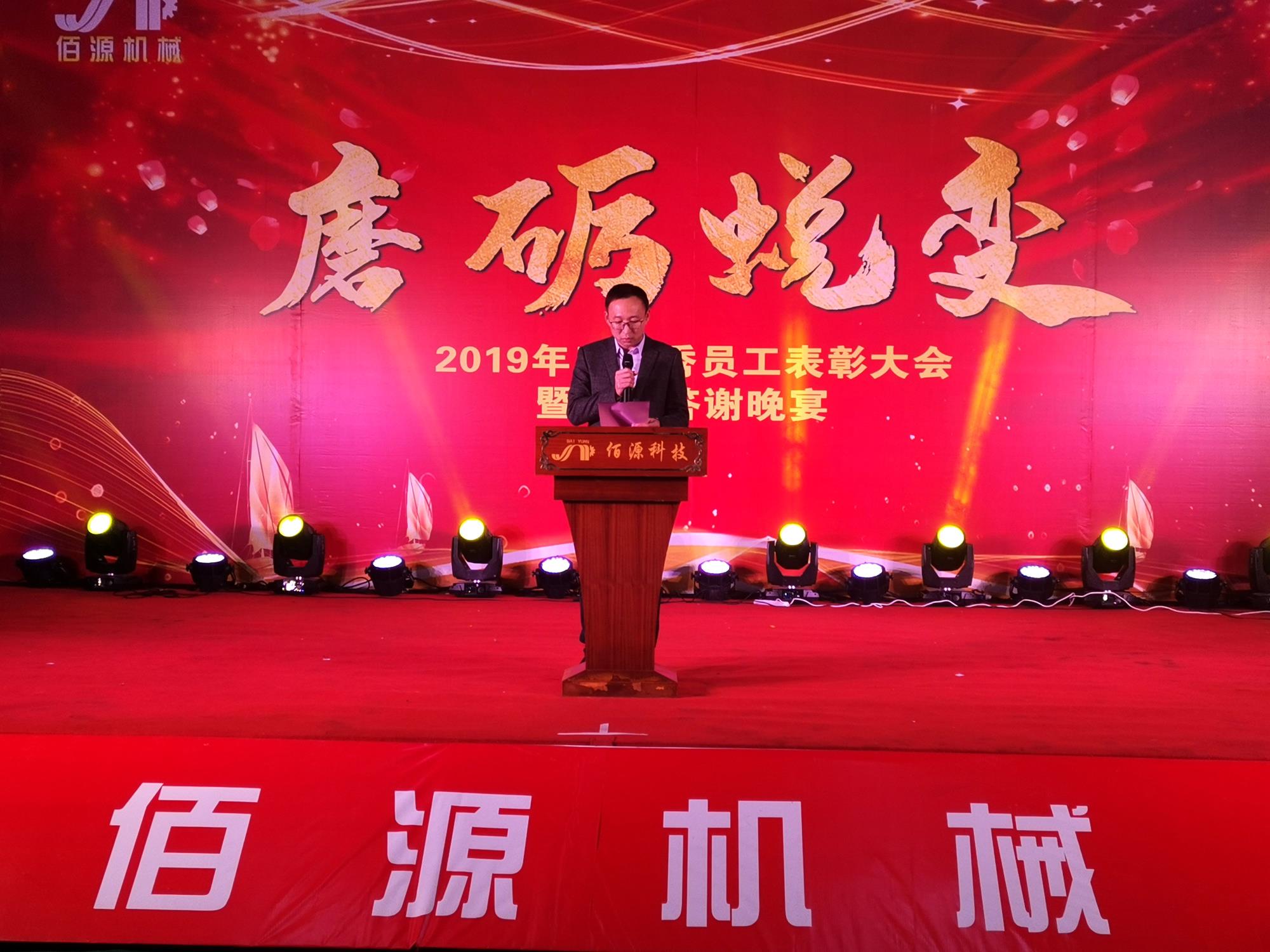 發(fā)布時(shí)間:[ 2020-01-19 ]磨礪蛻變,2019年度優(yōu)秀員工表彰大會(huì)暨尾牙答謝晚宴報(bào)道2020年1月10日,泉州佰源機(jī)械科技有限公司于公司廠區(qū)內(nèi)部舉辦了以“磨礪蛻變”為主題的2019年度優(yōu)秀員工表彰大會(huì)暨尾牙答謝晚宴,近500名員工和嘉賓齊聚一堂,共饗盛典。對(duì)酒當(dāng)歌,其樂(lè)融融,回望輝煌過(guò)去,把握現(xiàn)在,展望美好未來(lái)。2019年悄然過(guò)去,我們有成功,有喜悅…