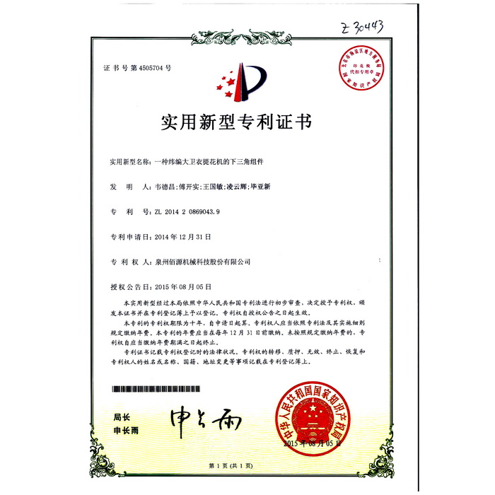 03一種緯編大衛(wèi)衣提花機(jī)的菱角組件
